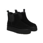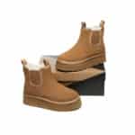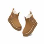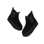 Meet the Chelsie Platform Boots – where Chelsea boot elegance meets trendy platform comfort. These winter essentials combine durable cow suede construction with plush sheepskin wool lining for unbeatable warmth. The 4cm platform sole adds fashionable height while the elastic side panels ensure easy slip-on wear. Perfect for elevating jeans or complementing dresses, they’re your go-to boots for every cold-weather occasion.