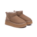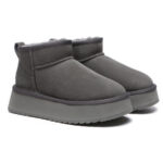 The platform UGG trend is here to stay—and the Ultra Mini UGG Platform Boots by Australian Shepherd prove exactly why. Combining a classic silhouette with a bold, modern twist, these ultra minis feature a chunky 4cm sponge sole that lifts your look while keeping things ultra comfy. Crafted from double-faced sheepskin and fully lined with plush wool, they’re the perfect companion for chilly winter days or cool summer evenings. Available in four versatile tones—Chestnut, Grey, Black, and Brown—this is the must-have boot for every season.