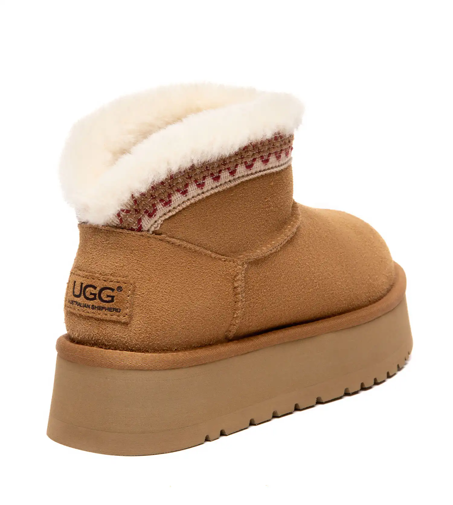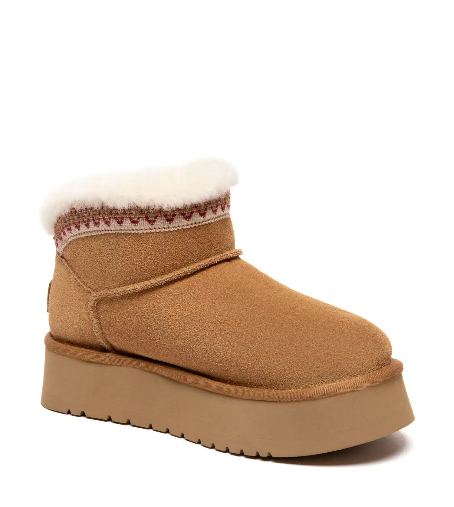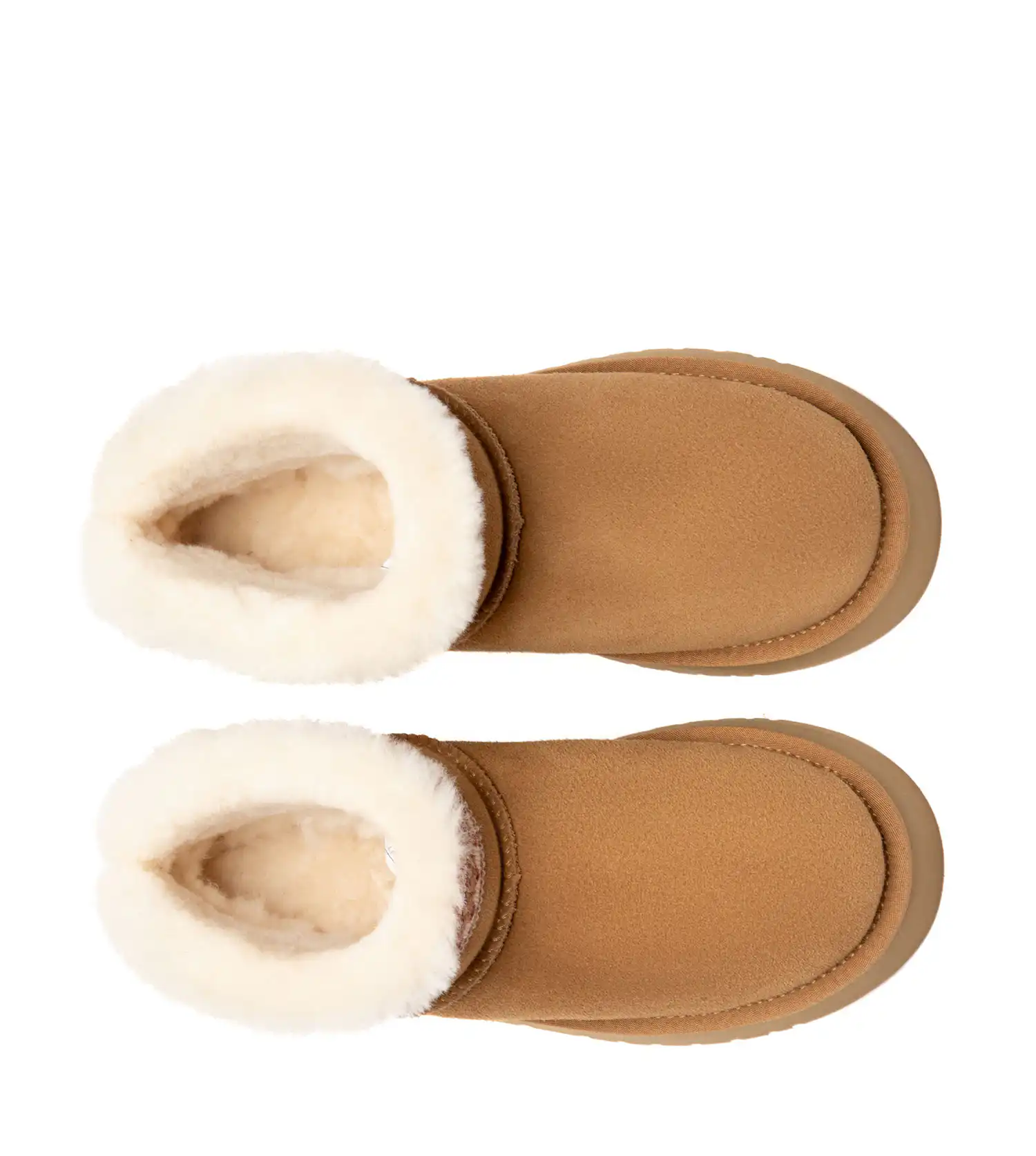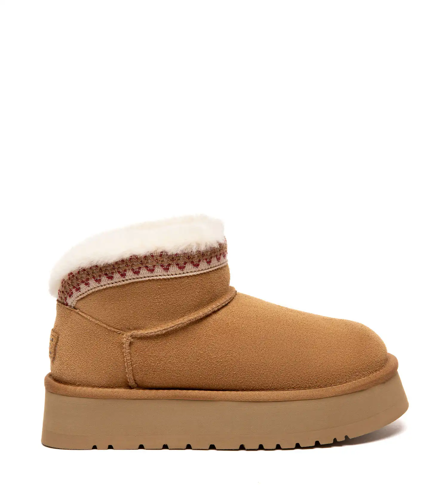 Introducing Liora, crafted with a cow suede upper and lined with soft sheepskin wool, ensuring comfort and warmth. Ideal for stylish wear, these versatile shoes are perfect for all-day use in any season. Available in chestnut and sand, and a range of sizes for the perfect fit.
