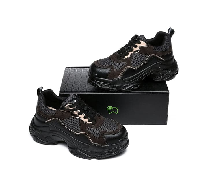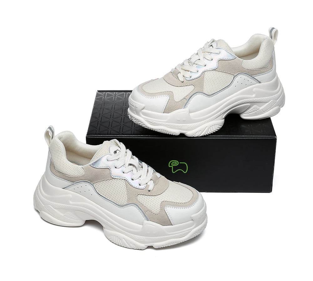 Elevate your footwear collection with the Como Sneakers, where sports-luxe design meets all-day comfort. These stylish chunky sneakers are made for movement, offering the perfect balance between function and fashion. Whether you’re running errands or heading out for a casual catch-up, the Como sneakers deliver reliable support and a sleek silhouette. Crafted from a premium blend of cow split leather and breathable mesh, they ensure both durability and comfort with every step.