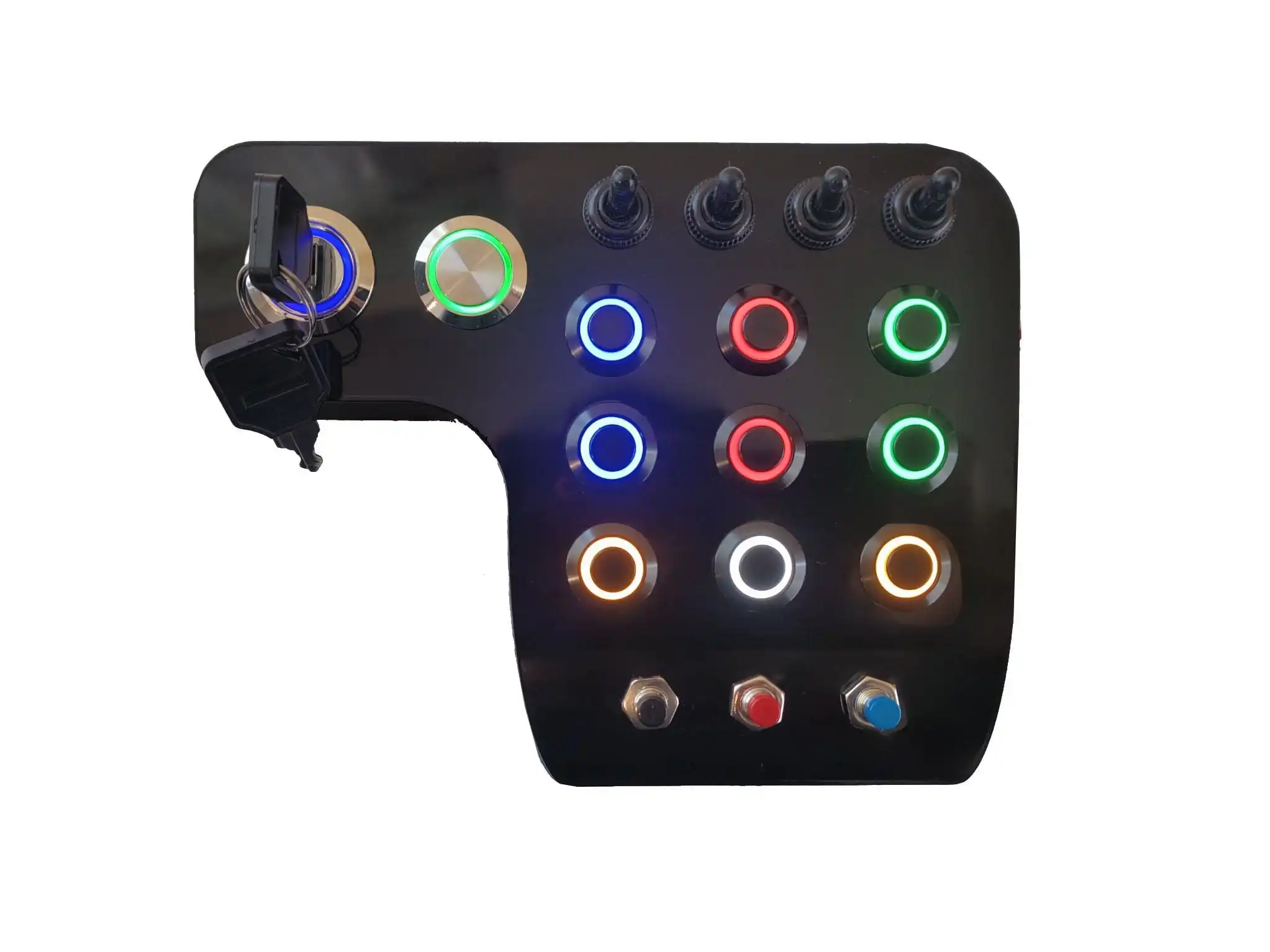- 4 Momentary toggle switches with black caps – durable and satisfying, ideal for on/off functions.