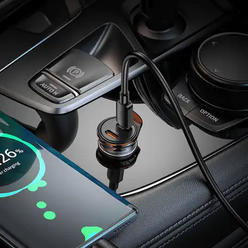 Introducing the 45W Dual USB C Super Fast Car Charger – the perfect companion for your road trips! This compact charger features a mini size and comes with a C to C cable included, providing you with ultra-fast charging for your devices. Stay powered and connected on the go with ease!