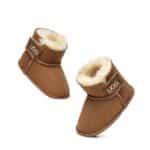 Keep your little one warm and cosy all winter long with the Baby Erin Booties. Crafted with premium Australian sheepskin, these adorable booties feature a soft wool interior that’s naturally breathable and moisture-wicking—keeping bub’s feet warm in winter and cool in summer. Designed with a secure Velcro tab, they’re easy to slip on and off and can be adjusted for a snug, stay-on fit. Add the comfort of walking on a soft wool rug to your baby’s everyday wear with these essential mini uggs.