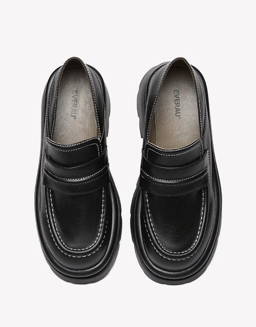 Step into sophistication with the Evanna Chunky Loafers by EVERAU, where comfort meets durability and exceptional craftsmanship. Designed for those who embrace a polished aesthetic in both professional and casual settings, these loafers pair effortlessly with tailored trousers or laid-back denim. Made from 100% premium cow leather and accented with chic white stitching, they elevate your wardrobe with refined style. Featuring a luxurious sheepskin lining and a cushioned sponge sole, the Evanna loafers promise all-day comfort and standout flair.