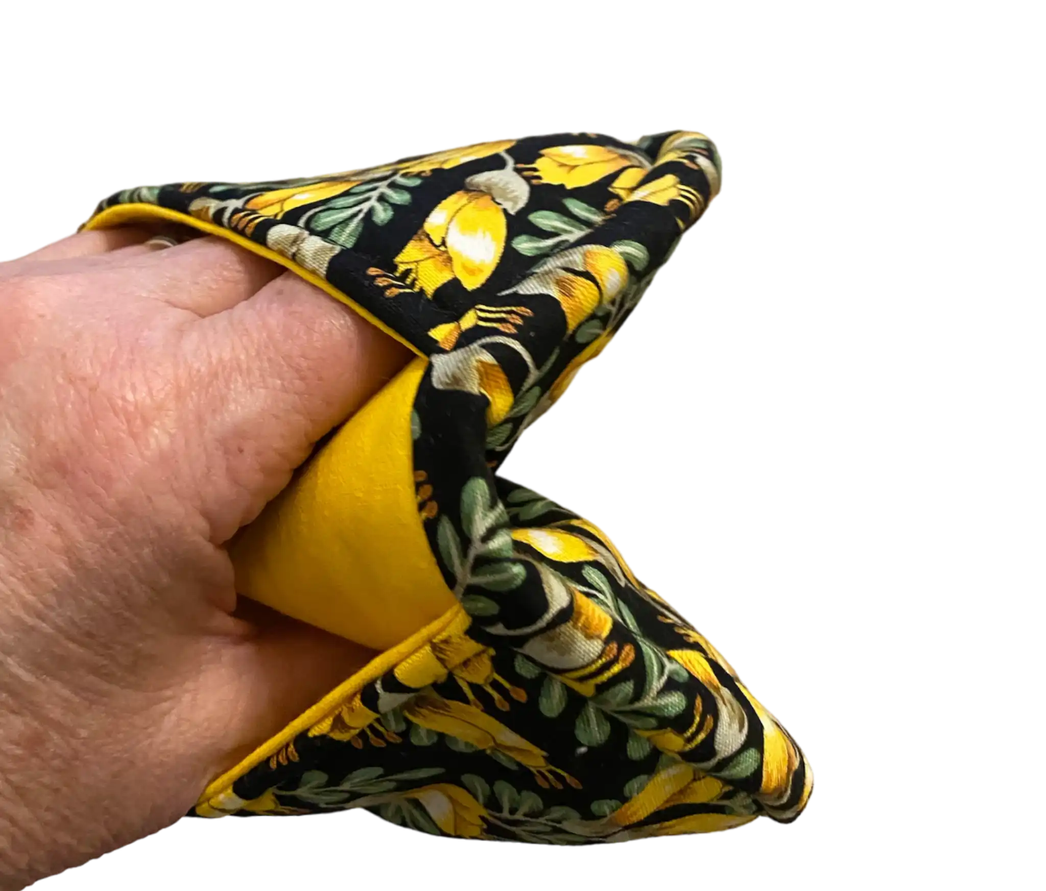 We use Kiwianna fabric for our small Pott Mitts, which feature 3 layers: an internal lining and an outer fabric. This design helps prevent burns, helping you feel safe and cared for while cooking.