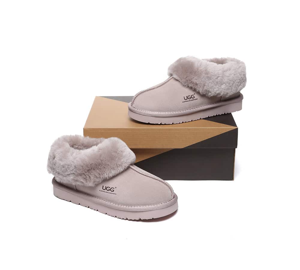 Slip into year-round comfort with our Classic Ankle Slippers, combining effortless style with premium sheepskin comfort. The breathable Australian sheepskin naturally regulates temperature – keeping toes cozy in winter and cool in summer. Designed with an easy slip-on ankle silhouette, these versatile slippers pair perfectly with loungewear or casual outfits for your coziest looks.