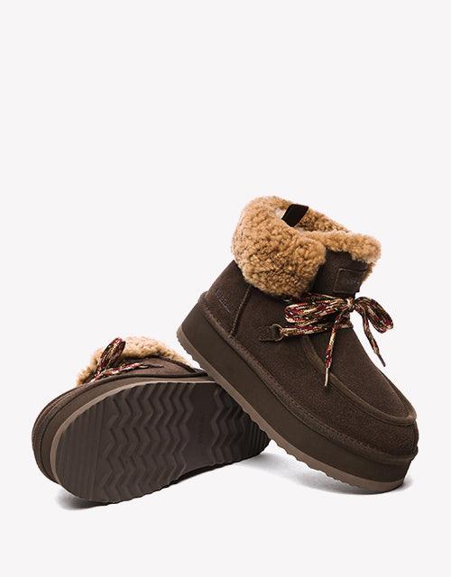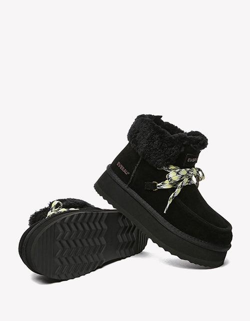 Step into a world of warmth and style with the Honour EVERAU ankle platform boots—crafted for those who never compromise on comfort or aesthetics. Designed with a durable cow suede upper and lined with 100% genuine sheepskin wool, these boots deliver a cozy experience no matter how low the temperature drops.