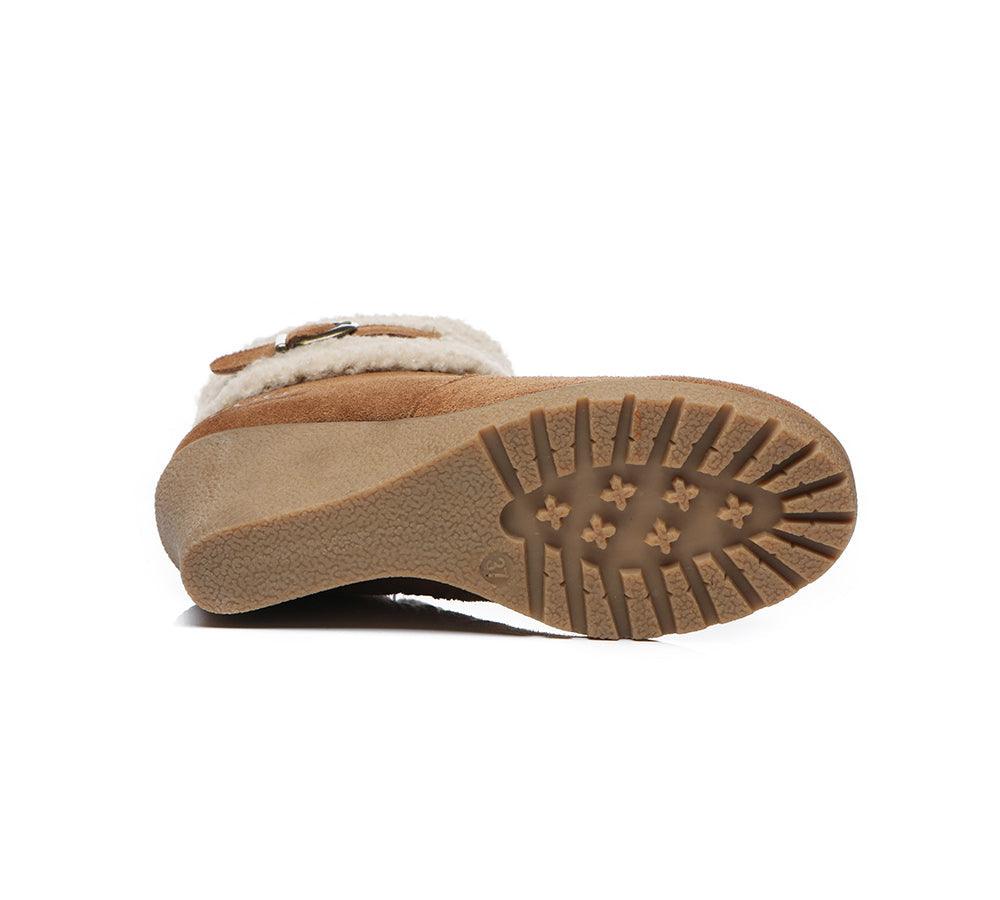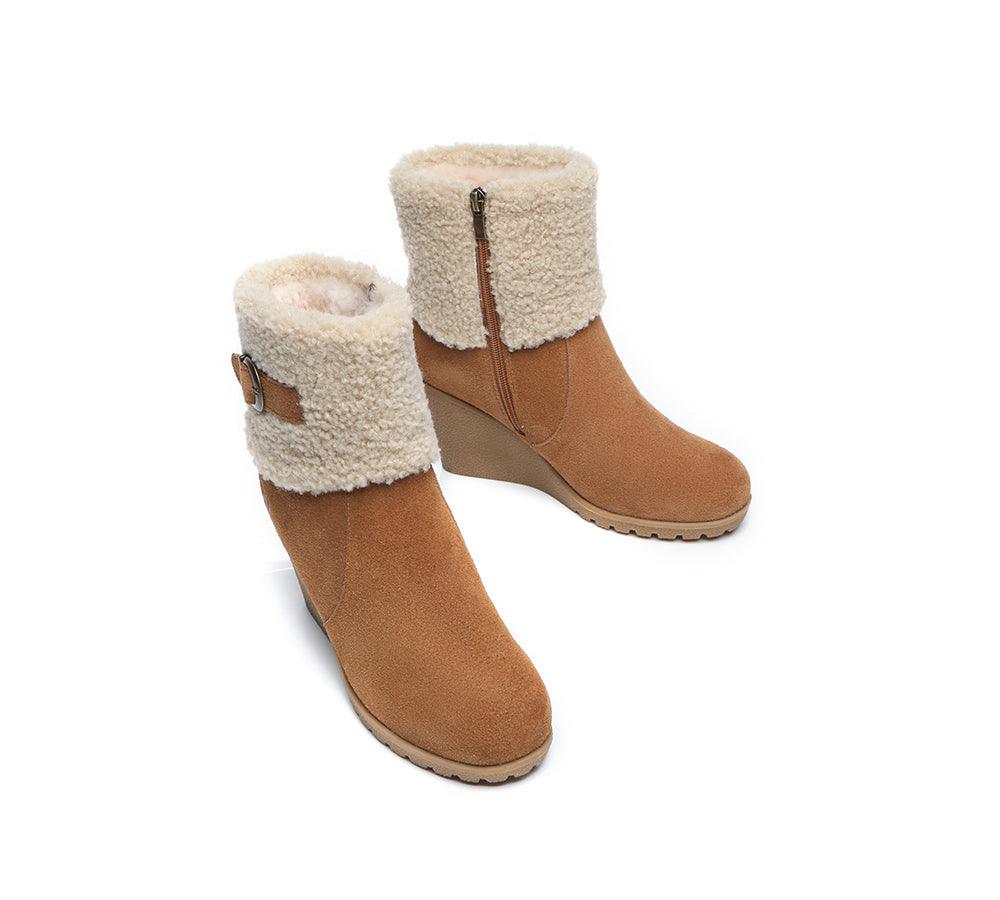 - Sheepskin-Lined Wedge Sole: Cushioned support with a fashionable lift.