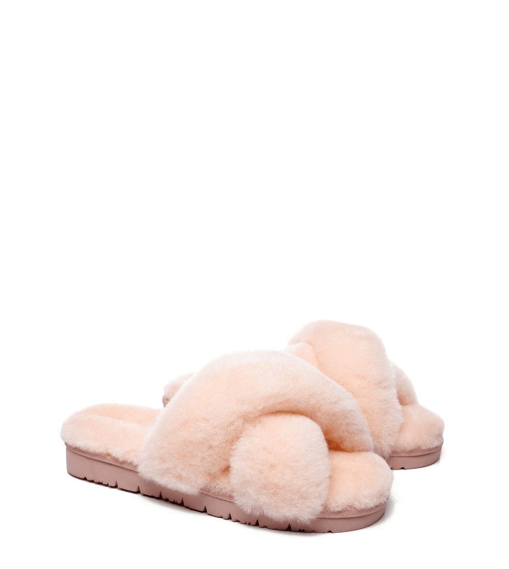 Whether you’re relaxing at home or heading out for a quick errand, the Leanna Crossover Fluffy Slides deliver effortless comfort and chic style. Designed with a soft wool crossover upper and fully lined with plush sheepskin wool, these slip-on slippers provide warmth, breathability, and year-round cosiness. The lightweight EVA sole offers a cushioned step with excellent grip, while the open-toe design adds a breezy touch to your everyday wear.