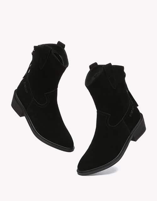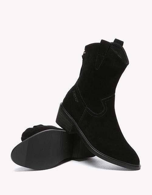 Crafted from premium cow leather and finished with a chic cowboy-inspired collar, the Lewis boots are defined by their pointed toe and graceful silhouette that flatters the natural shape of the foot. A convenient side zipper ensures easy wear, while the durable rubber sole supports you throughout your day in style.