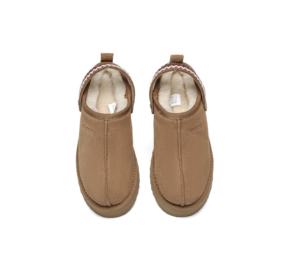 Step into sophistication with the EVERAU Maeve Platform Slingback Slippers, a flawless blend of style, comfort, and durability. Designed for the modern individual who appreciates refined elegance and practical wear, these slippers are perfect for everything from lounging at home to running casual errands. Made from premium cow suede and lined with plush sheepskin wool, the Maeve slippers deliver exceptional warmth and luxurious softness that pampers your feet with every step.