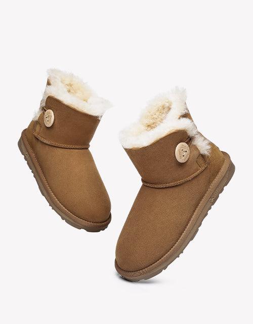 Step into unparalleled style and comfort with the EVERAU Ankle Mini Button Ugg Boots. Featuring a timeless button detail, these boots add a touch of charm to your cold-weather wardrobe while keeping you cozy and stylish. Made from 100% genuine double-faced sheepskin, they offer unmatched softness, warmth, and durability—perfect for everyday wear.