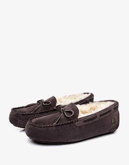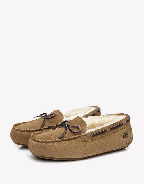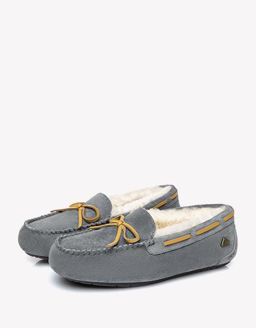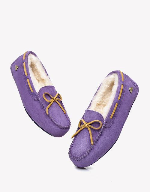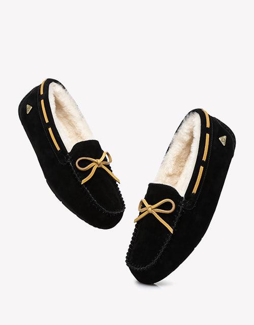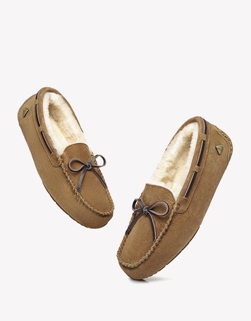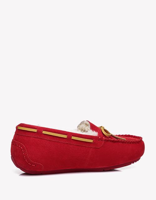 Experience cloud-like comfort with the Miracle Moccasin UGG Slippers, where luxurious sheepskin wool meets stylish practicality. These incredibly soft slippers feature a plush pig leather upper with a charming bow detail, paired with a grippy rubber sole that transitions seamlessly from indoor comfort to outdoor wear. Available in nine beautiful colors from classic Chestnut to vibrant Dawn Pink, they’ll keep your feet toasty warm while looking effortlessly chic.