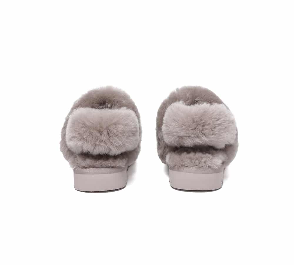 Meet your new wardrobe staple – the Muffin Fluffy Slippers combine timeless style with modern comfort. Featuring a convertible slingback strap (with both fluffy and plain options) and stain-resistant nanotech coating, these platform slippers transition effortlessly from cozy mornings to casual outings. The breathable sheepskin lining keeps feet comfortable year-round, while the lightweight EVA platform adds fashionable elevation.