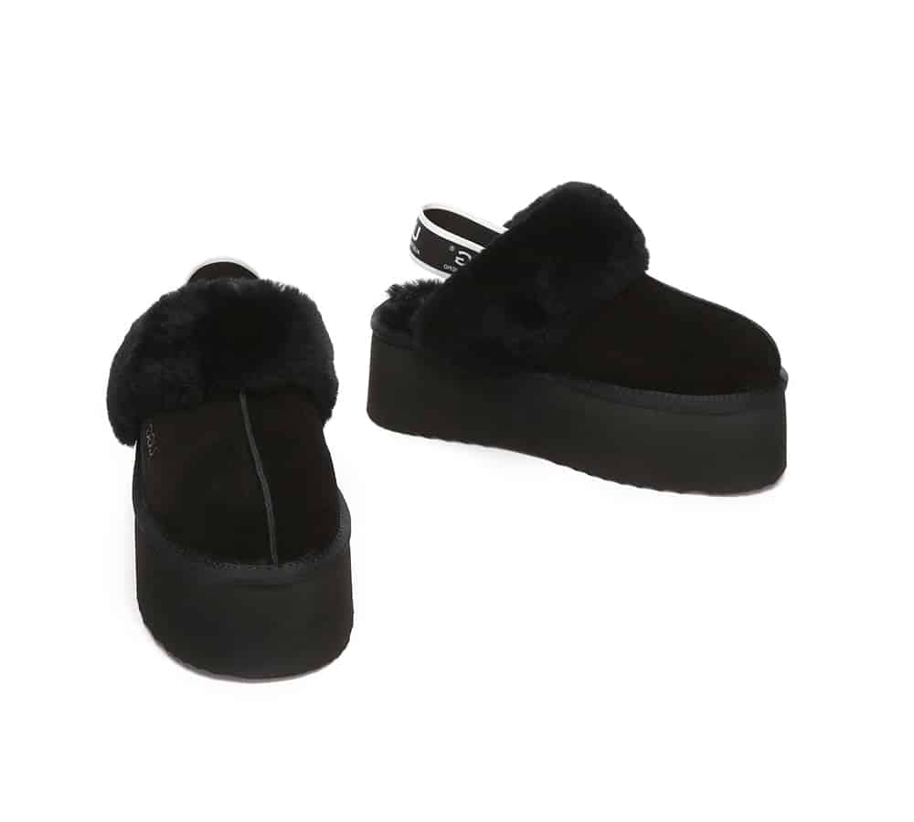 Introducing what might be our highest platform style yet – the Muffin Plus Platform UGG Slippers by Australian Shepherd. This updated take on the beloved muffin silhouette features a bold 5cm platform sole for an ultra-modern edge that turns heads with every step. Designed with luxurious sheepskin wool lining and a nanotech-treated cow suede upper for water and stain resistance, these slippers are just as practical as they are fashionable. The removable elastic logo strap adds security and versatility for both indoor lounging and casual outdoor outings.