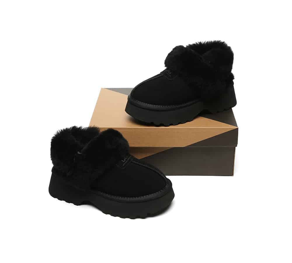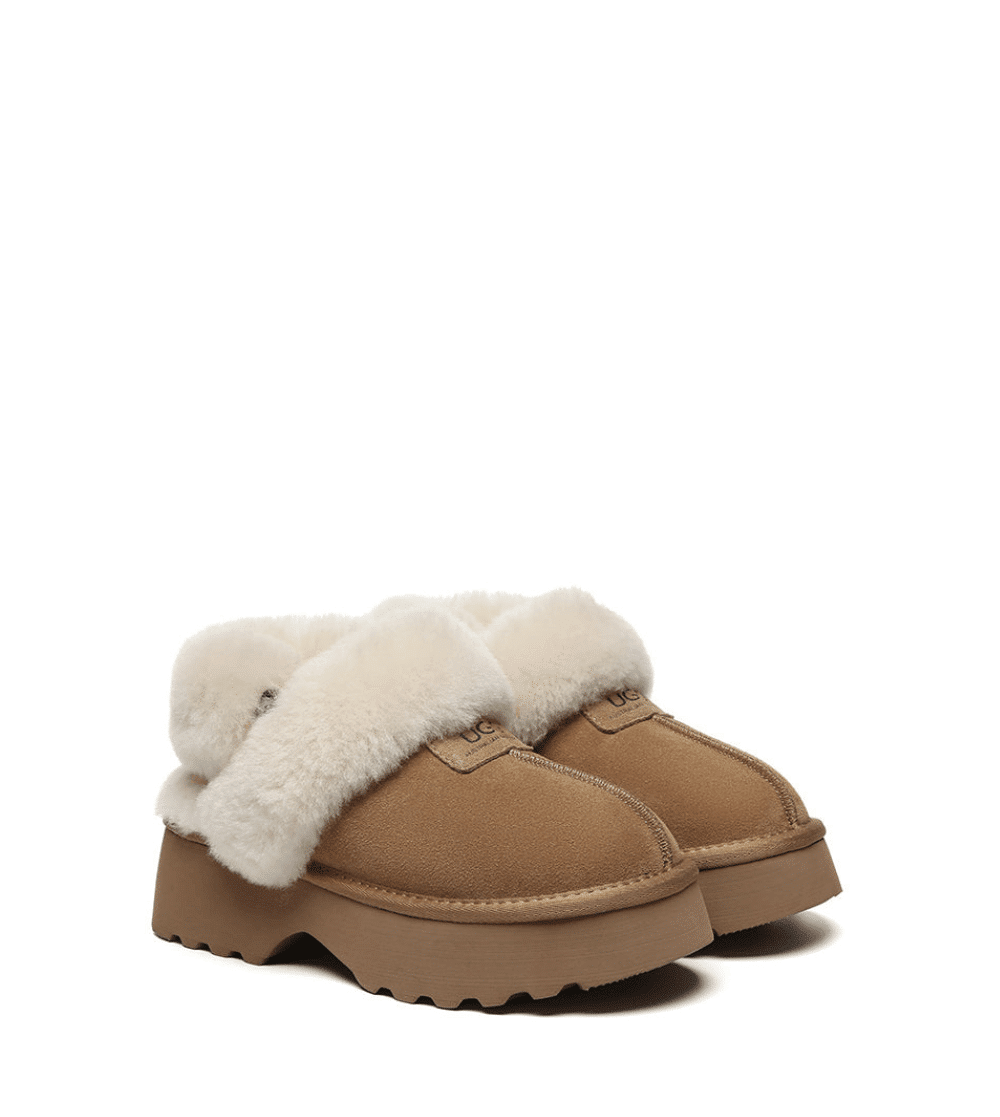 Introducing the head-turning Australian Shepherd Muna 3-Way Platform Slippers! Designed to elevate any outfit, these versatile slippers feature a removable fluffy or plain strap, allowing you to customize your look. The unique 4cm platform design adds stylish height while the nanotech-coated suede upper repels liquids and stains. Whether paired with denim shorts or a dress, these slippers blend fashion and function effortlessly.