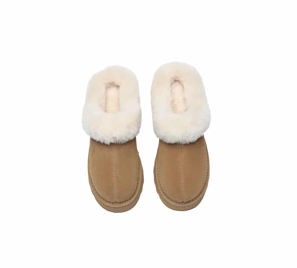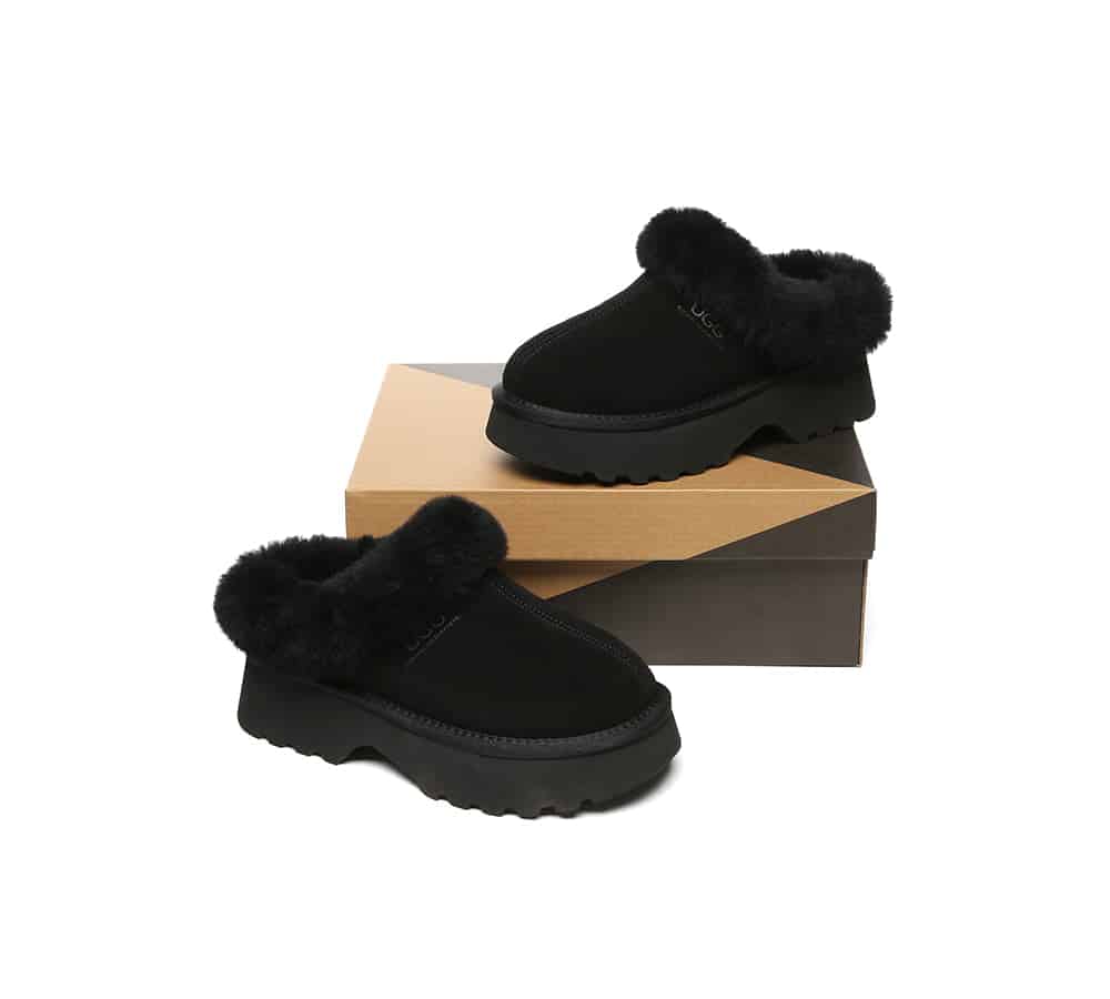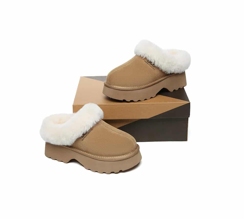 Step up your style with our Murray Platform Slippers, combining 4cm of fashion-forward elevation with cloud-like sheepskin comfort. The water-resistant cow suede exterior stands up to daily wear while the plush wool lining keeps feet perfectly cozy. Whether pairing with loungewear or jeans, these versatile slippers add instant chic to any casual ensemble.