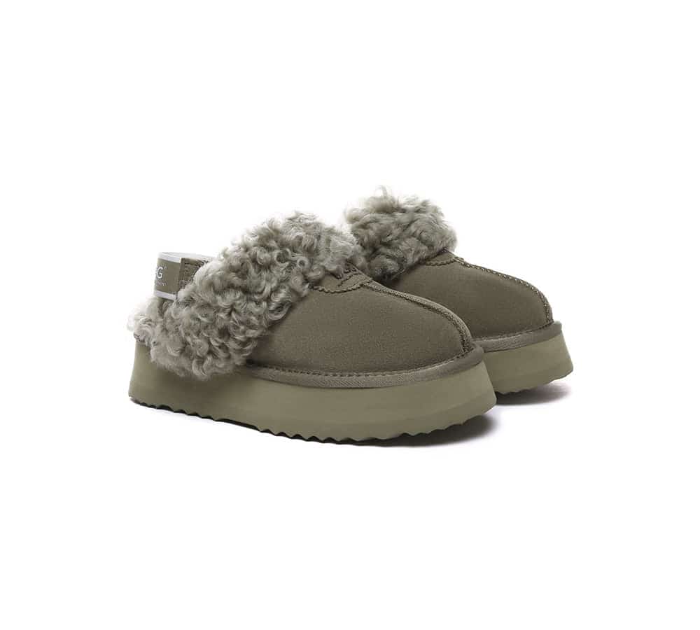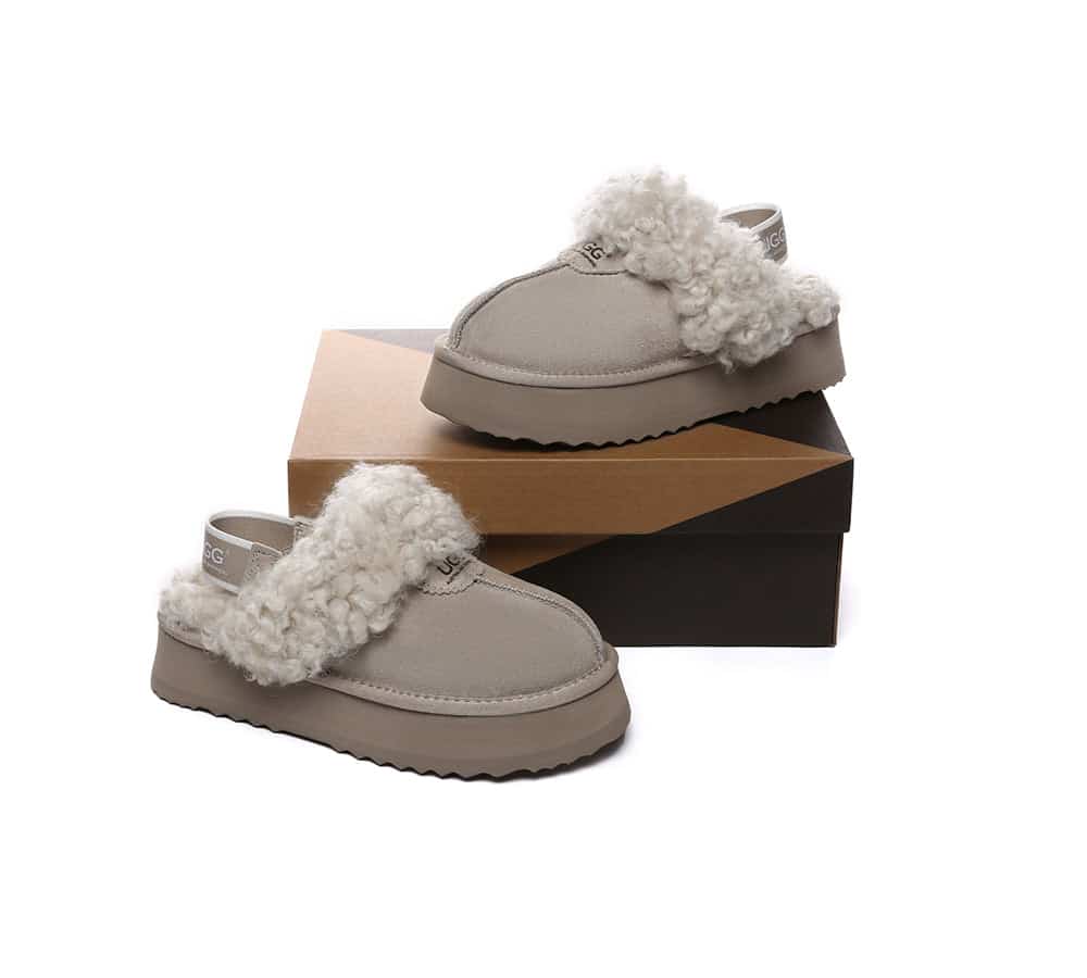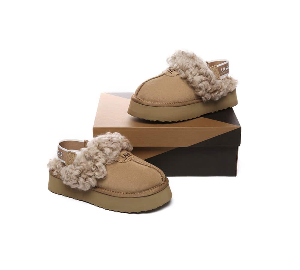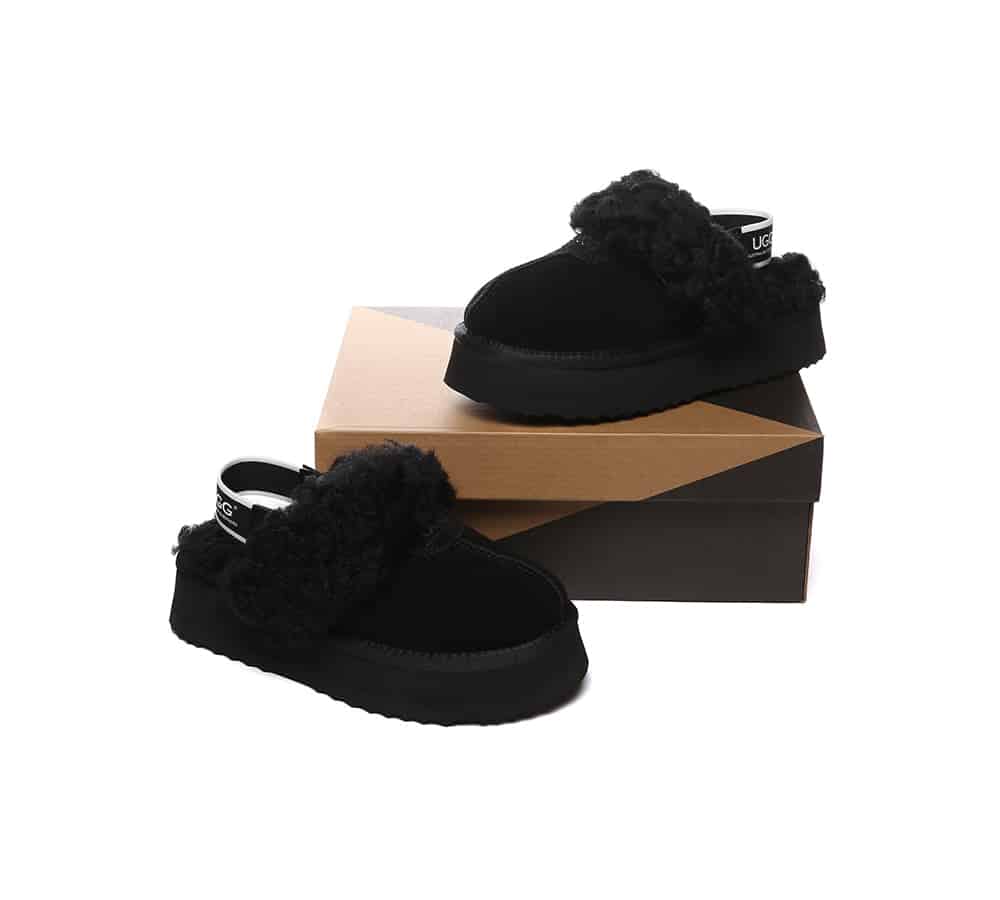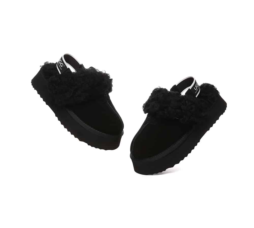 Discover versatile comfort with our Slingback Platform Slippers, featuring convertible strap styling and plush sheepskin lining that adapts to every season. The nanotech-coated suede repels stains while the breathable wool interior regulates temperature. Whether worn with the strap for outdoor errands or without for lounging, these slippers deliver both fashion and function with their chunky platform sole and elegant design details.