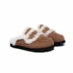 Experience everyday luxury with the Australian Shepherd UGG Remi Slippers, now available in classic Chestnut and sophisticated Black. These premium slippers feature ultra-soft sheepskin wool lining that naturally regulates temperature – keeping feet cool in summer and warm in winter. The durable rubber outsole provides both comfort and traction, perfect for indoor relaxation or quick outdoor errands.
