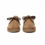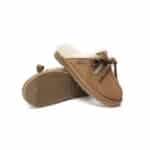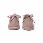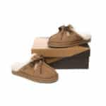 Experience unparalleled comfort with the Ruby Ribbon UGG Slippers by Australian Shepherd. Designed for both warmth and style, these slippers feature a plush sheepskin lining and a water-resistant cow suede upper to keep your feet cosy and dry all day. The standout detail is the removable ribbon tie, which allows you to customise the look and fit—whether styled as a bow for a feminine flair or swapped with your own ribbon for a personal touch. Complete with a lightweight, anti-slip EVA rubber sole, these slippers are perfect for both indoor lounging and outdoor errands.