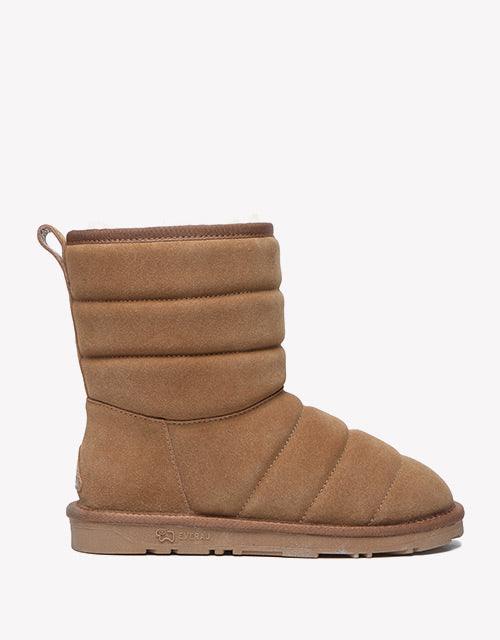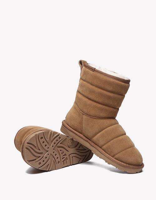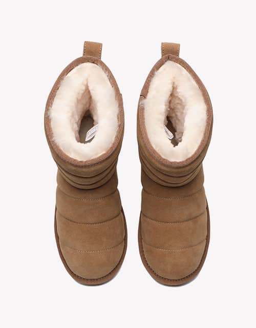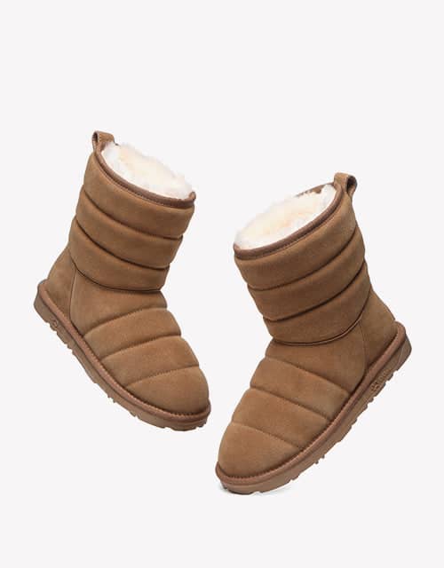 Experience the perfect fusion of warmth and style with our Short Puffer Boots, crafted from premium Australian merino wool and genuine sheepskin. These boots deliver cloud-like comfort with a fashion-forward puffer design that transitions effortlessly from daytime errands to evening outings. The luxurious fleece lining and breathable construction ensure all-day comfort in any setting.