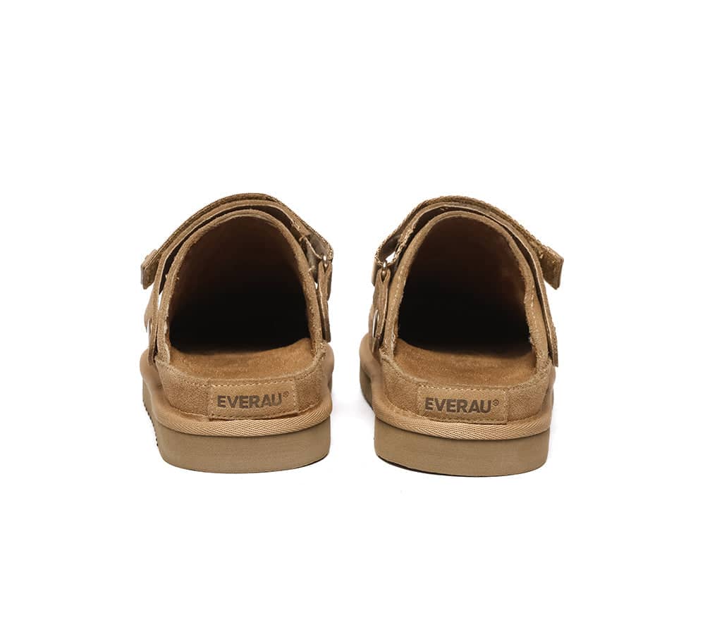Experience modern clog comfort with the EVERAU Sierra Sandal Slippers, featuring an innovative adjustable strap design that offers two wearing styles. Crafted from premium cow suede with a breathable fiber lining, these versatile clogs combine the ease of sandals with the support of traditional footwear. The lightweight EVA outsole provides all-day comfort and superior traction, making them perfect for seasonal wear.