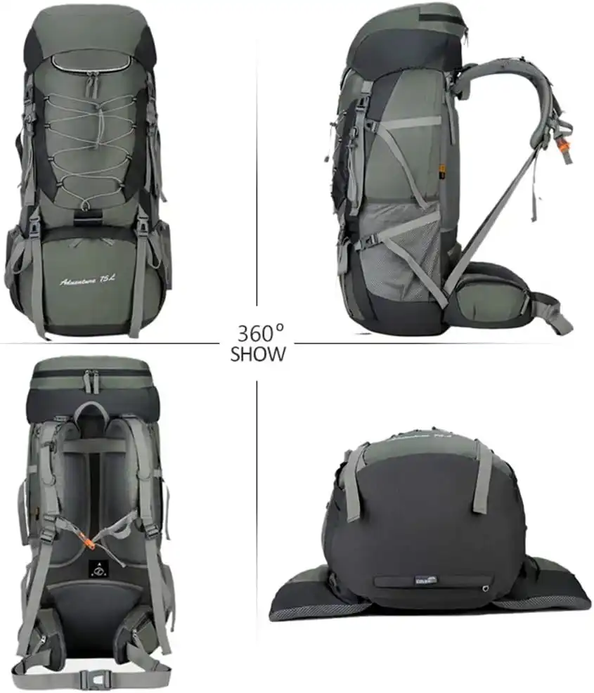 This 75L camping and hiking backpack is designed for multi-day outdoor adventures, including trekking, camping, climbing, mountaineering, fishing trips and extended travel. With a large capacity and practical design, it offers reliable performance and comfort for demanding outdoor use.