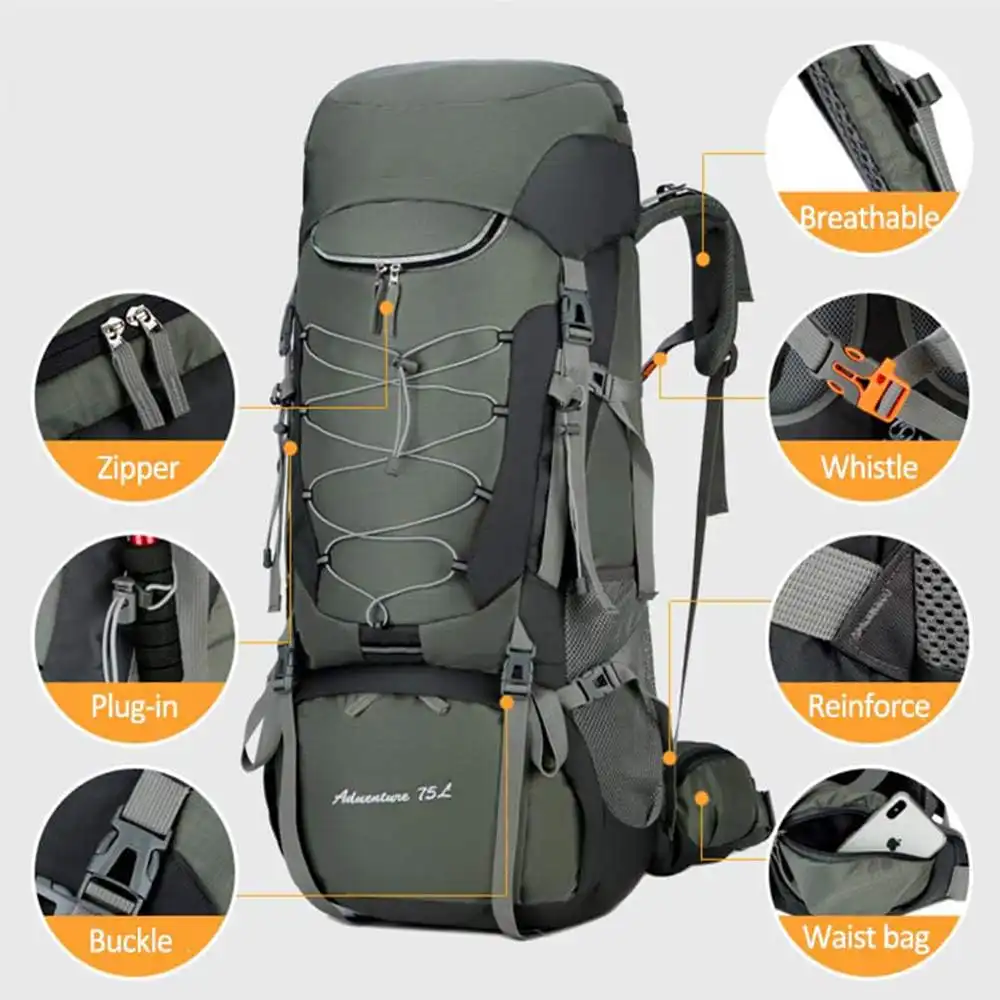 75L Camping & Hiking Backpack – Outdoor Travel Mountaineering Pack with Rain Cover 75L Camping & Hiking Backpack – Outdoor Travel Mountaineering Pack with Rain Cover