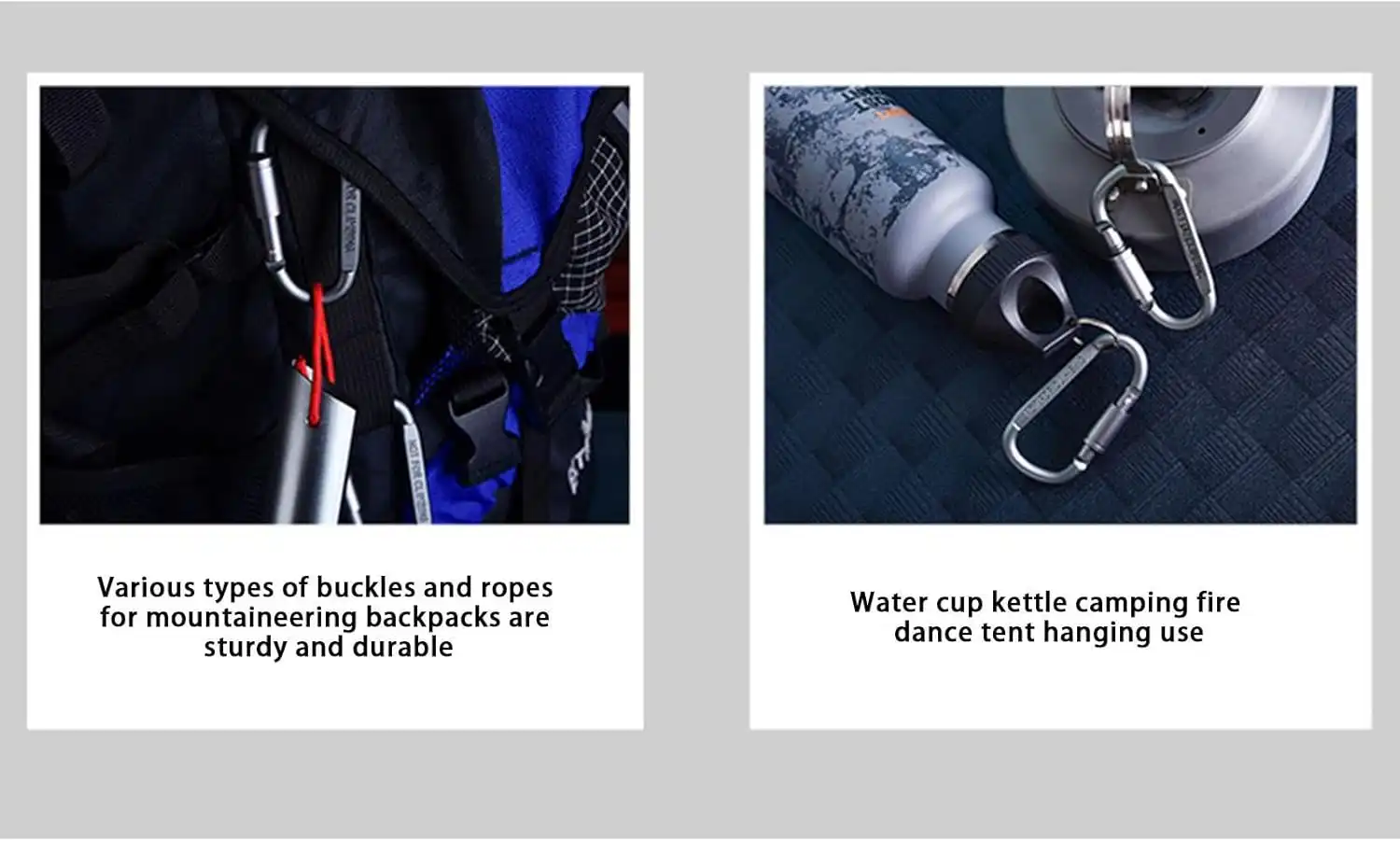 These durable D-shaped carabiner clips are ideal for everyday use and outdoor activities such as camping, hiking, fishing, and backpacking.