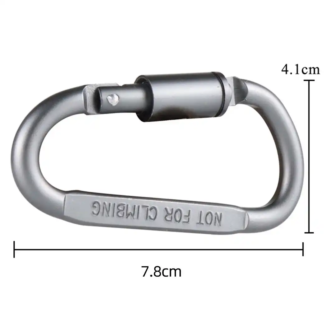 These heavy-duty D-shaped aluminium carabiner hooks are perfect for everyday use and outdoor adventures like camping and hiking. Lightweight yet strong, they offer a secure connection and all-weather durability, making them ideal for a variety of applications.