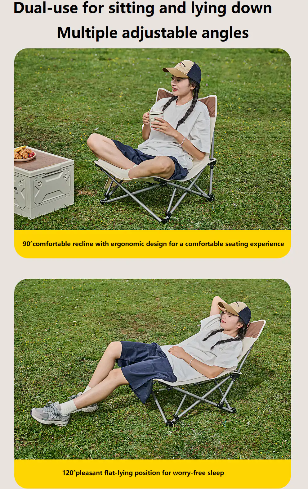 Dual-Function Design: Adjustable angles for sitting or reclining (90° upright, 120° recline).
