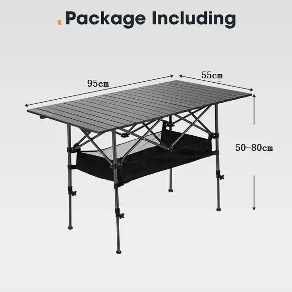 Designed for quick and easy use, the table can be set up in approximately one minute, making it ideal for camping, tailgating, backyard gatherings or worksites. With a tabletop size of 95cm × 55cm, it offers ample space for cooking, dining or organising gear while relaxing at your campsite.