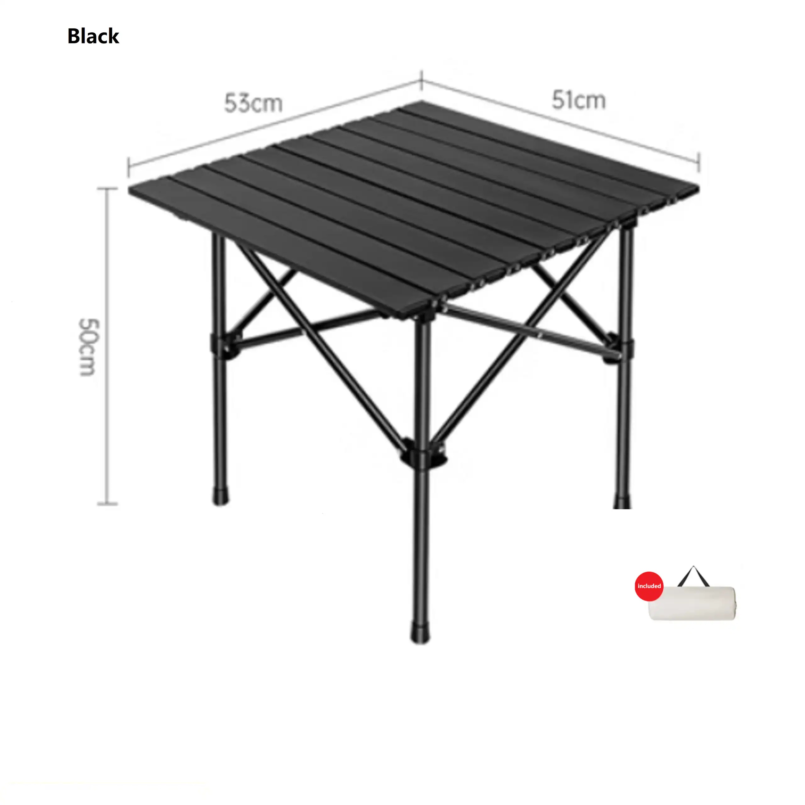 The table is available in Beige and Black, offering versatile colour options to suit different styles and environments. With compact dimensions of 53cm in length, 51cm in width and 50cm in height, it fits easily into a wide range of travel and camping arrangements without taking up excessive space.