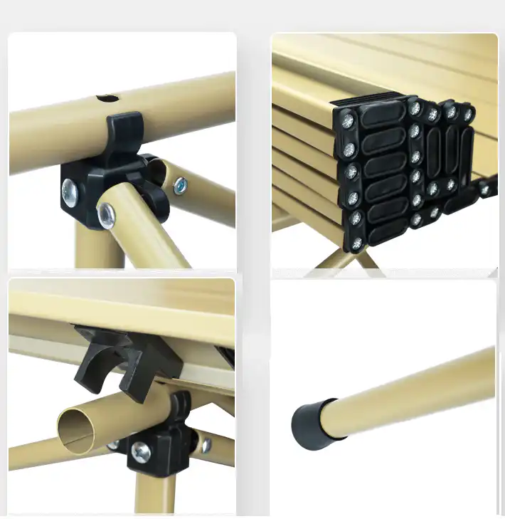 The surface is dirt-resistant and easy to wipe clean, ensuring low maintenance even during outdoor use. Designed to balance elegance and functionality, this folding table enhances your outdoor experience and is ready to go whenever you are.