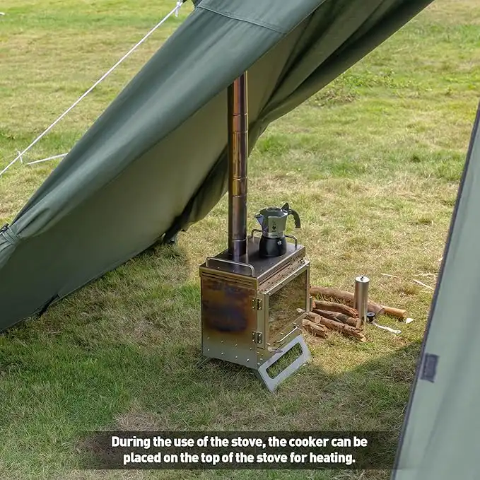 Stay warm and enjoy the ambience of real flames with this high-performance outdoor wood burning stove, designed for winter camping, outdoor cooking, and heating.