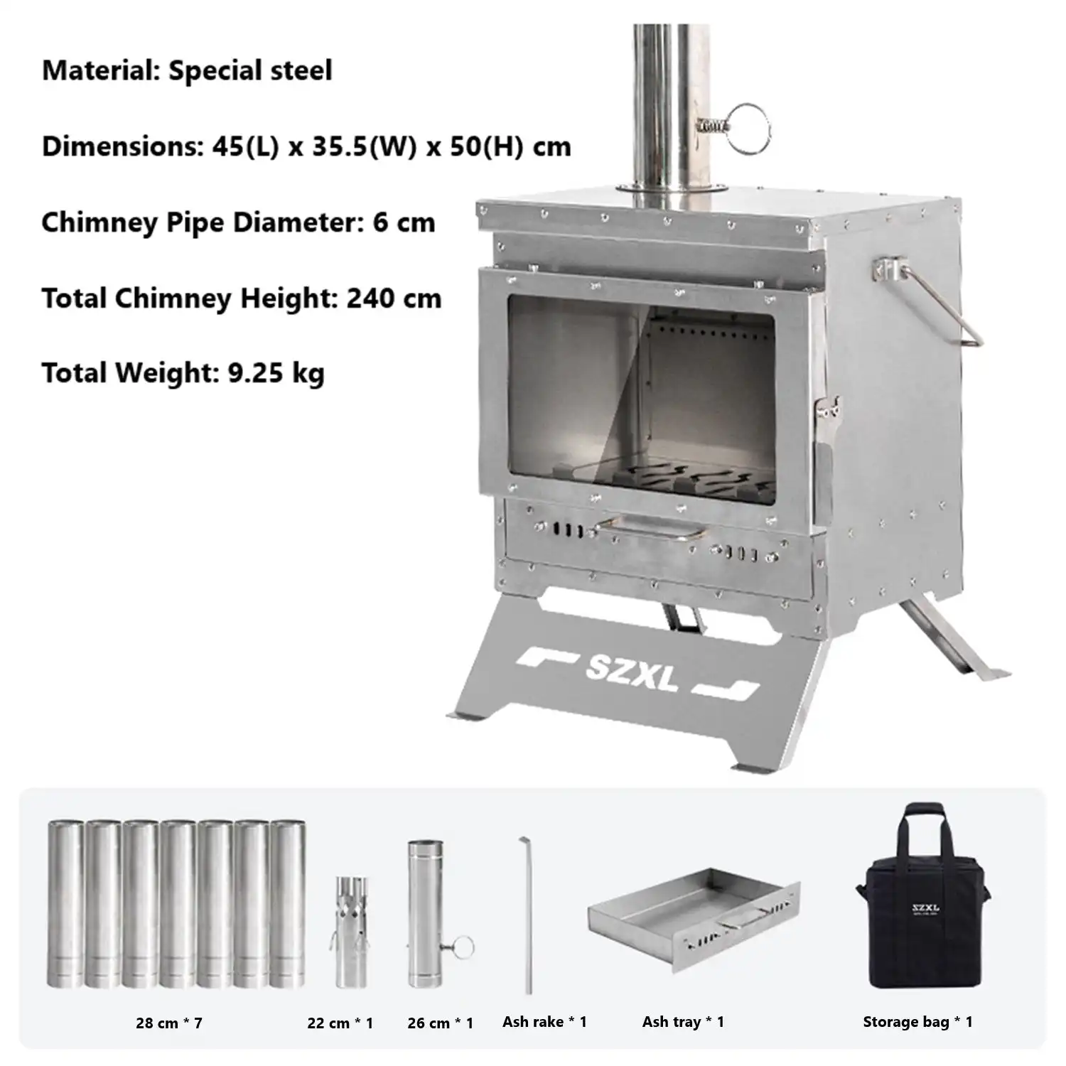 This outdoor wood stove is constructed from special steel and high-temperature refractory glass, combining durability with visual appeal. The large 11-inch fire-viewing glass allows you to clearly observe the flame, creating a cosy and inviting outdoor atmosphere while enhancing safety and enjoyment.
