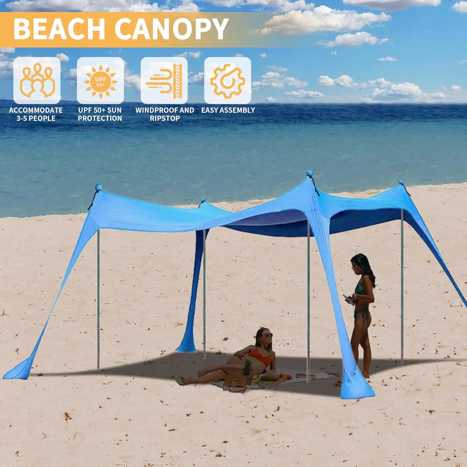 Enjoy reliable sun protection and generous shade with this large beach canopy, ideal for family outings, beach days, fishing trips, and outdoor picnics. Designed for easy setup and portability, it provides a comfortable shaded area wherever you go.