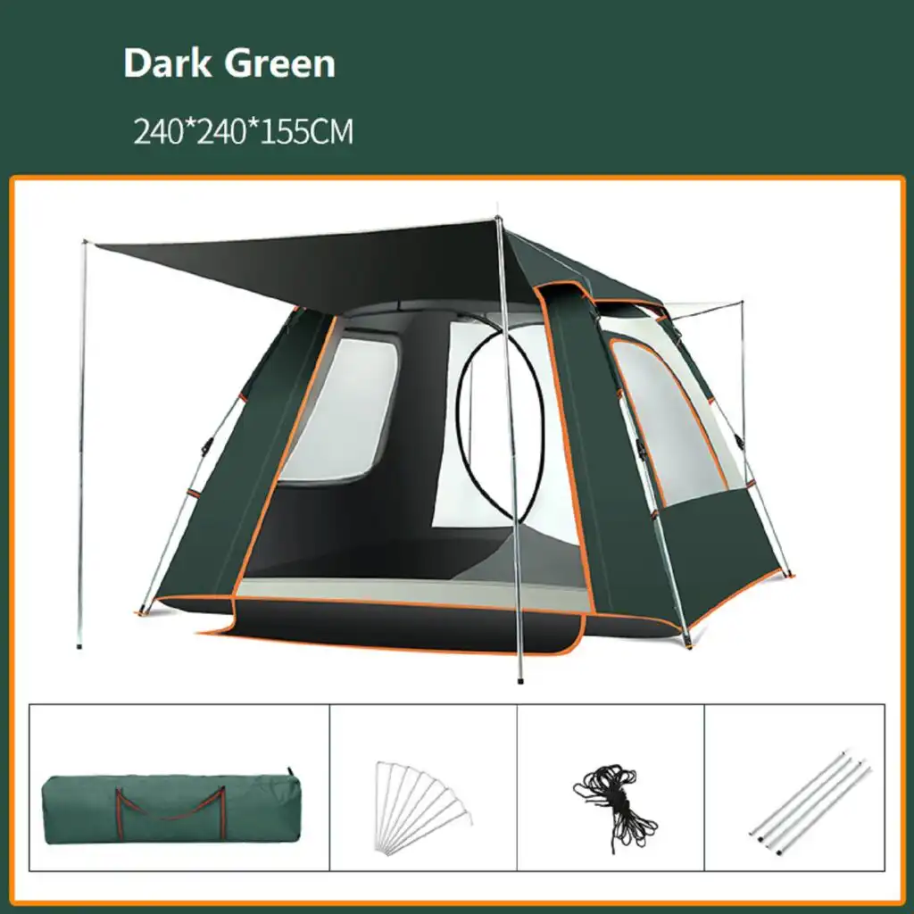 Quick to assemble and dismantle. Equipped with sturdy aluminium poles, large sand anchors, rubber bands, sandbags, and ground pegs to enhance stability in light to moderate wind conditions.