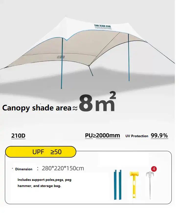 Made from 190T PU-coated silver anti-UV polyester fabric for UPF 50+ sun protection. 1500mm waterproof fabric with taped seams keeps your gear dry in wet conditions.