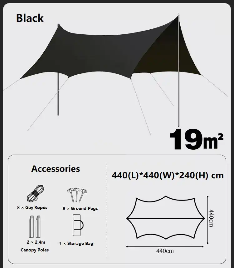 The Camping Black-Glue Coating Canopy offers durable UV protection with high-quality polyester fabric, making it perfect for camping, beach trips, and outdoor events. Its easy setup and portability ensure you can enjoy reliable shade wherever you go.