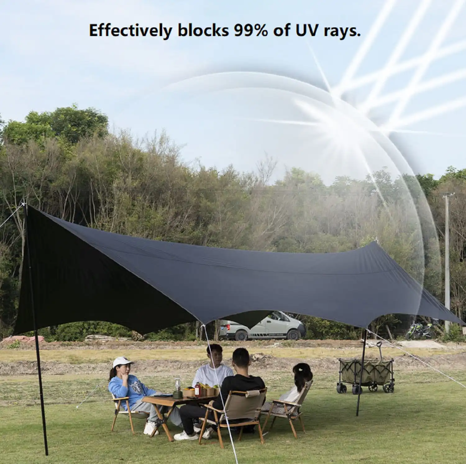 Made from high-quality polyester Oxford fabric, this canopy is durable, tear-resistant, and built for long-term outdoor use. The black-glue coating enhances sun protection by effectively blocking UV rays, providing reliable shade and improved heat resistance.