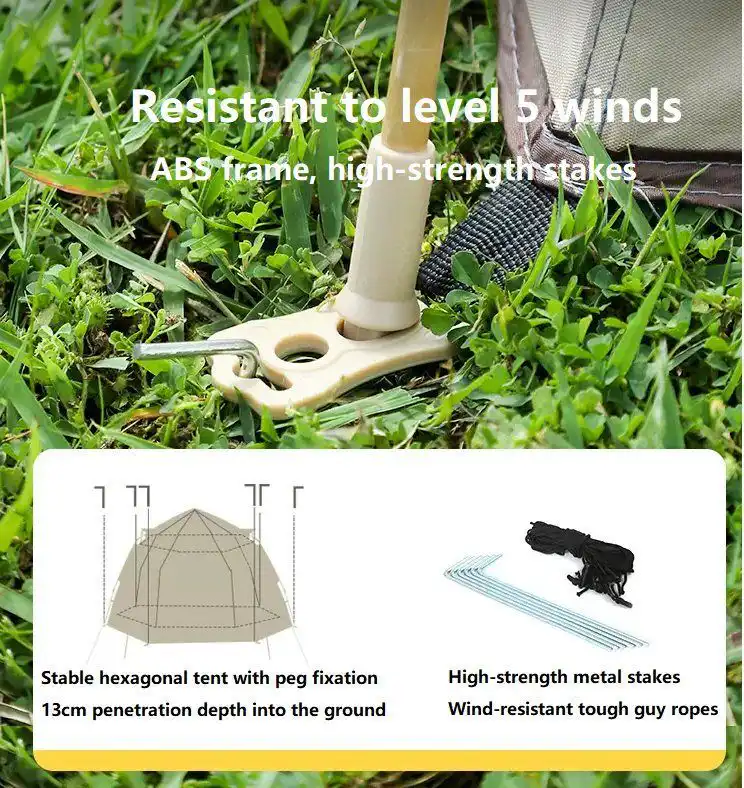 Stable Structure: ABS frame and high-strength metal stakes ensure stability, even in strong winds.