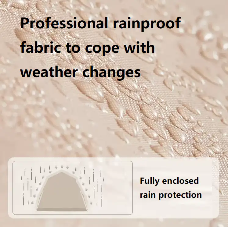A stable hexagonal structure is achieved through a professional ABS frame paired with high-strength metal stakes, providing excellent overall stability. Enhanced wind resistance is supported by ground pegs with a 13cm penetration depth and durable wind-resistant guy ropes, helping the tent remain secure in windy conditions.