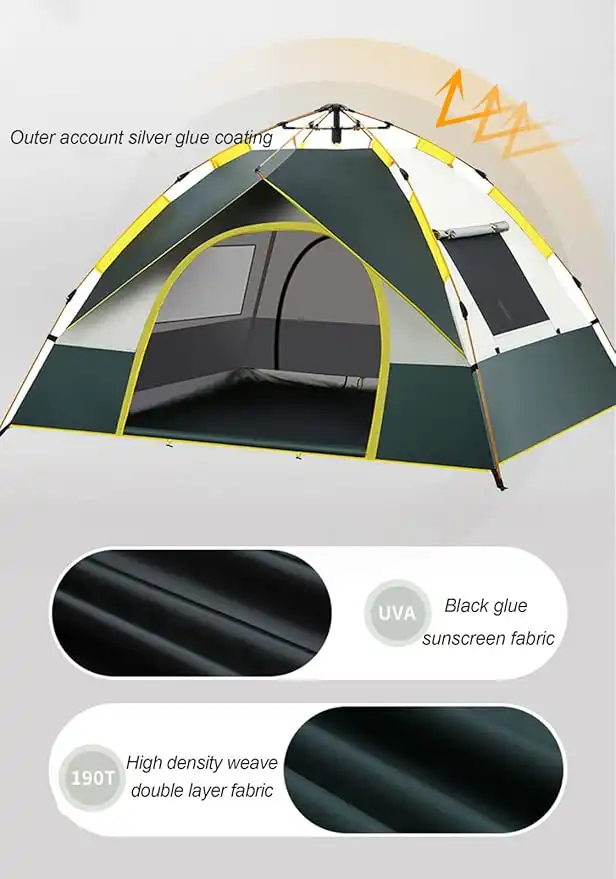 Enjoy hassle-free camping with this automatic pop-up tent, designed for comfort, ventilation, and portability. Suitable for 2–4 people, perfect for camping, beach outings, picnics, and other outdoor activities.