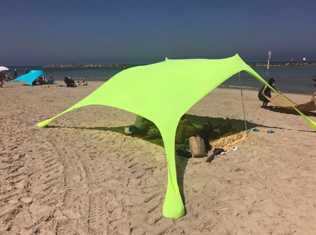 The Portable Beach Canopy provides effective UV protection, blocking up to 98% of harmful rays, making it ideal for beach days, camping, and outdoor activities. Lightweight and compact, it sets up easily with natural anchors and offers generous shade for 1–3.