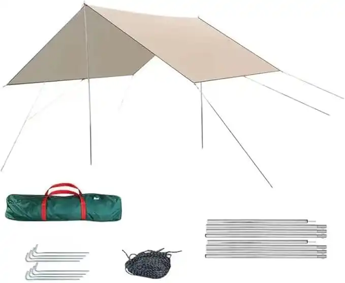 1 × Canopy,1 × Storage Bag, 8 × Thick Ground Nails, 4 × 3m Ropes, 2 × Support Poles