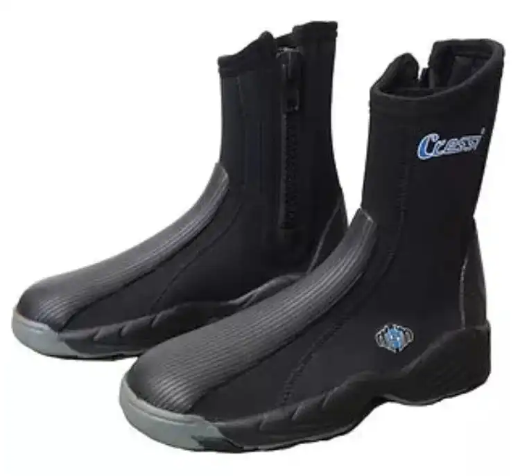 An ankle to heel length side zip makes them easy to put on and take off while a 5mm thick neoprene upper offers protection and warmth.