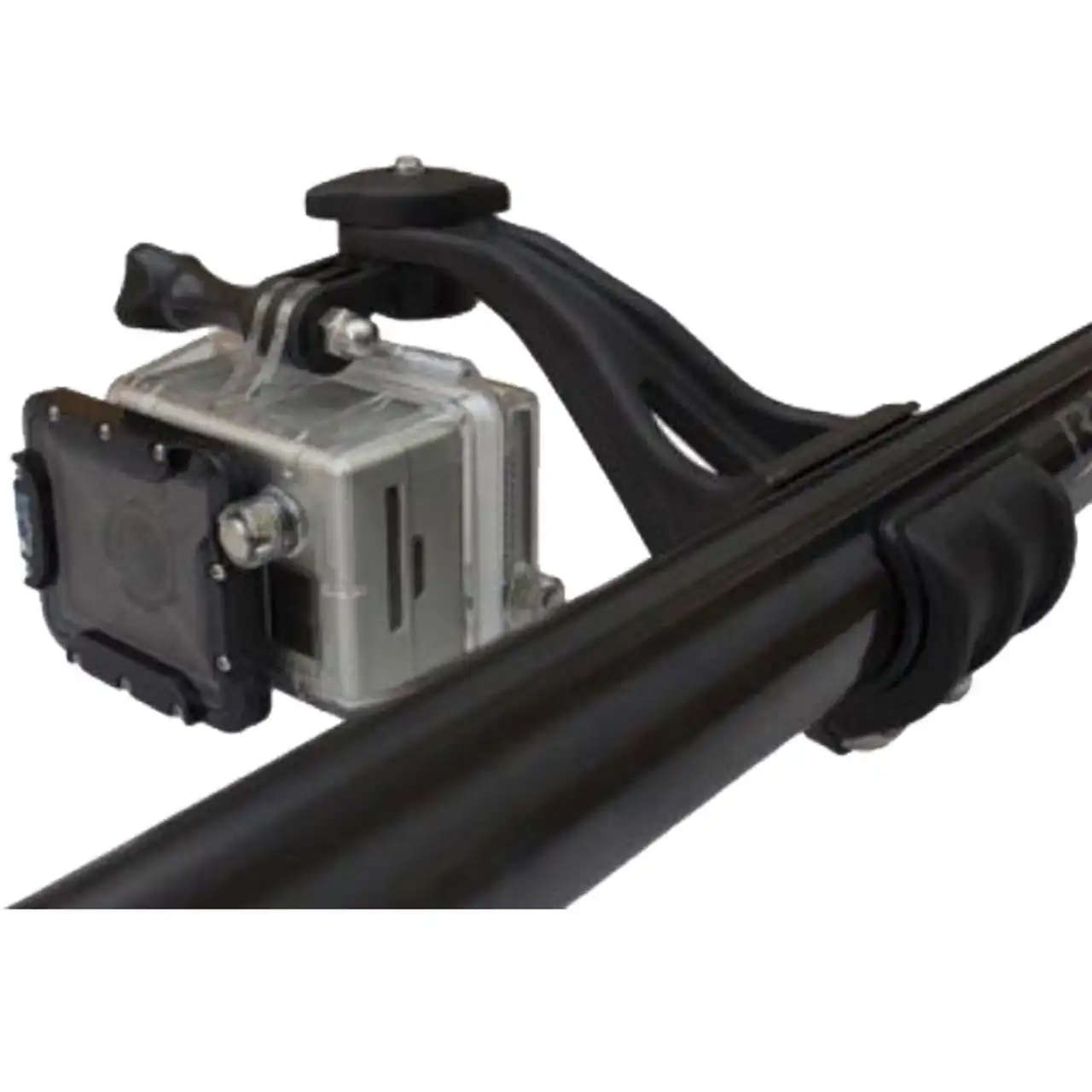 The Rob Allen GoPro Camera Speargun Mount easily attaches to the barrel of your speargun for awesome, hands-free underwater filming. Made of glass-filled nylon with stainless steel hardware this camera mount is lightweight and durable. The mount allows attachment of a GoPro camera directly with the built-in three-prong adapter, or other cameras via a threaded bolt. It easily fastens to round aluminum and carbon speargun tubes by tightening the two clamp screws. A rubber insert (included) prevents shifting around the barrel and protects the speargun tube from scratching. Can be attached to hold the camera on the right or left side of the speargun.