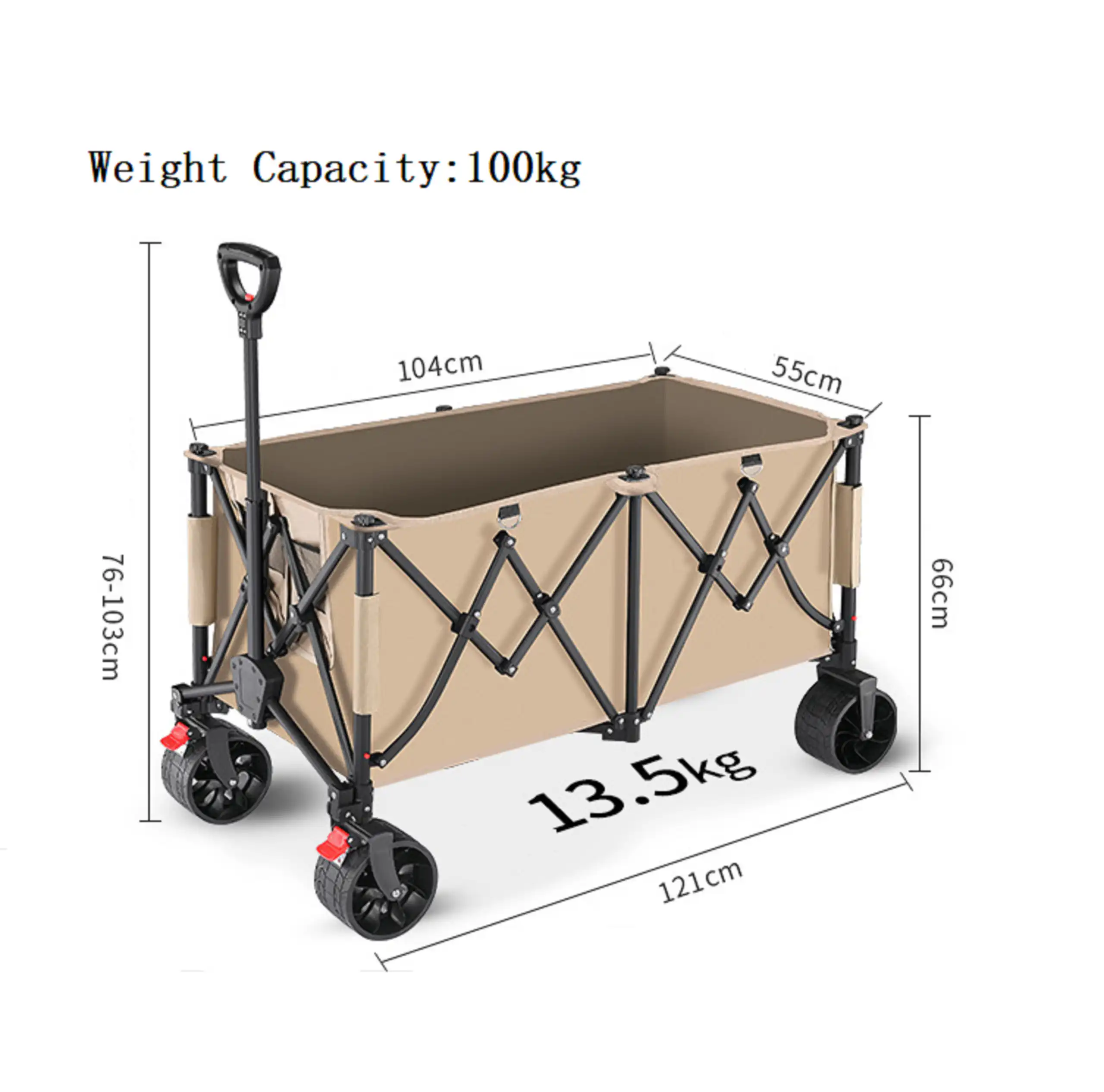 With a generous 260L capacity, the open size measures 121L × 55W × 66H cm, offering more storage space than most wagons on the market. It is perfect for transporting camping gear, groceries, sports equipment or garden supplies.