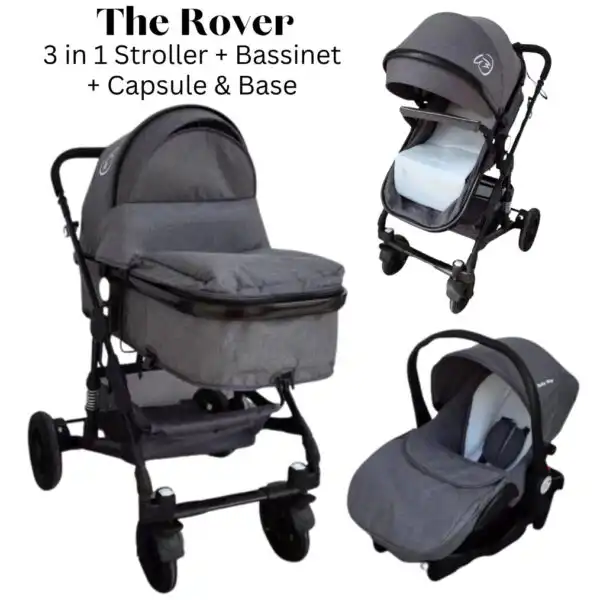 Rover Black – 3 in 1 Stroller System + Bassinet + Capsule Combo